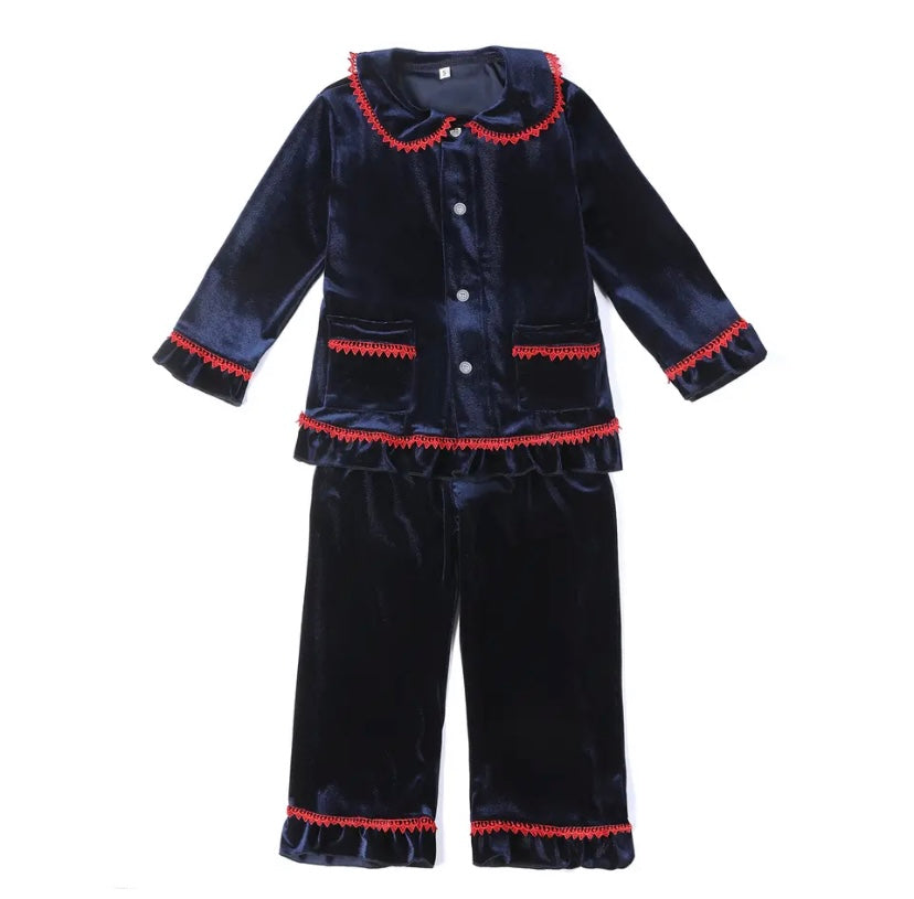 Navy Velvet Christmas Pyjamas